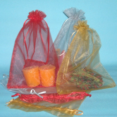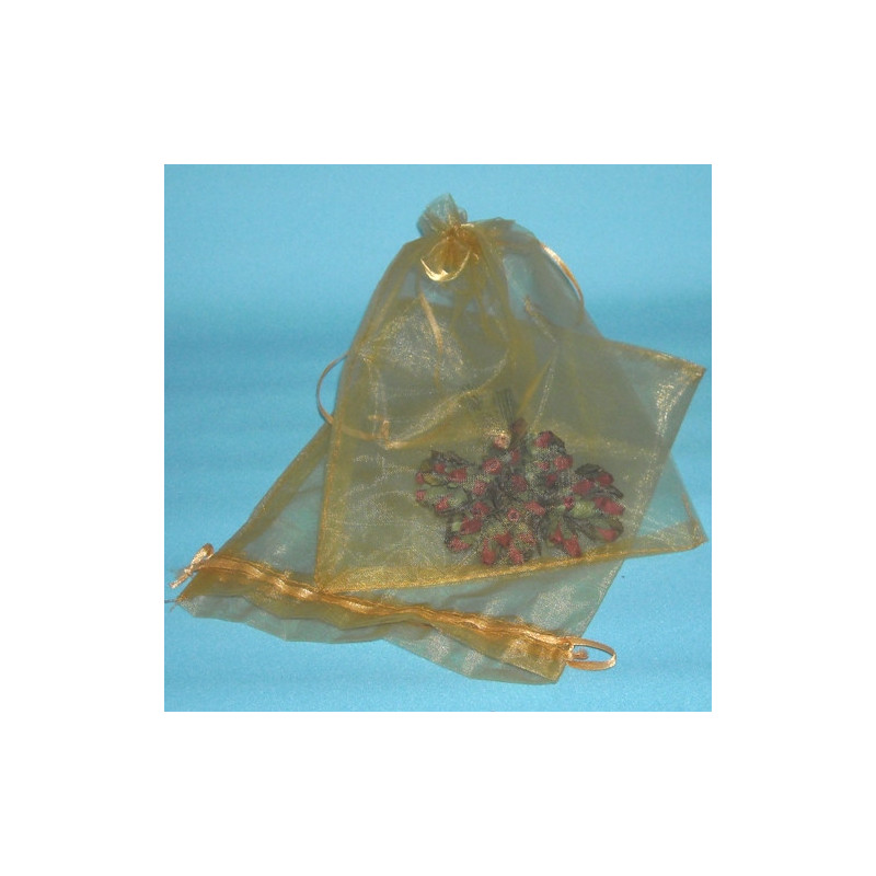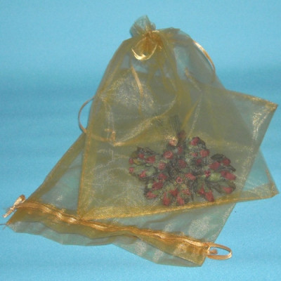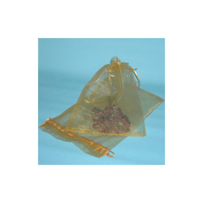 Saca/bolsa em organza ouro. Ideal para lembranças e ofertas...