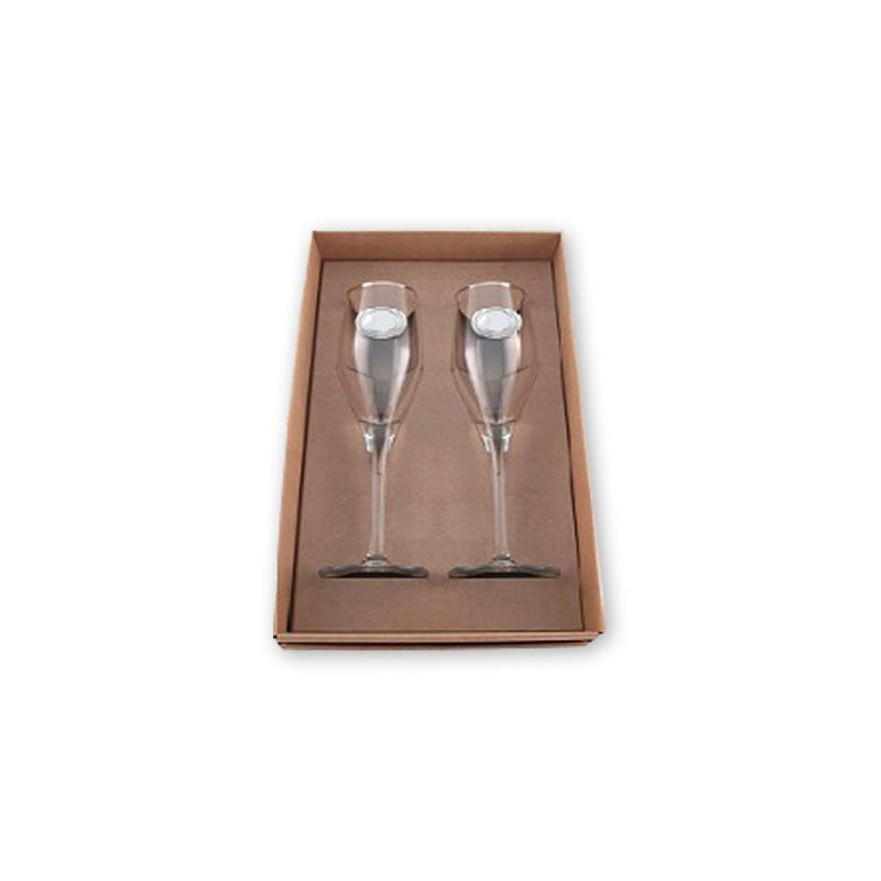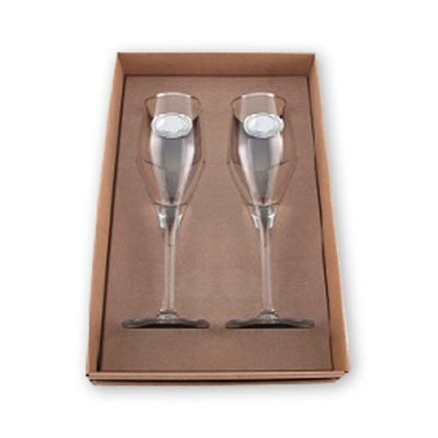 Conjunto de Flutes em vidro com aplicação de placa (Oval) bilaminada a prata.