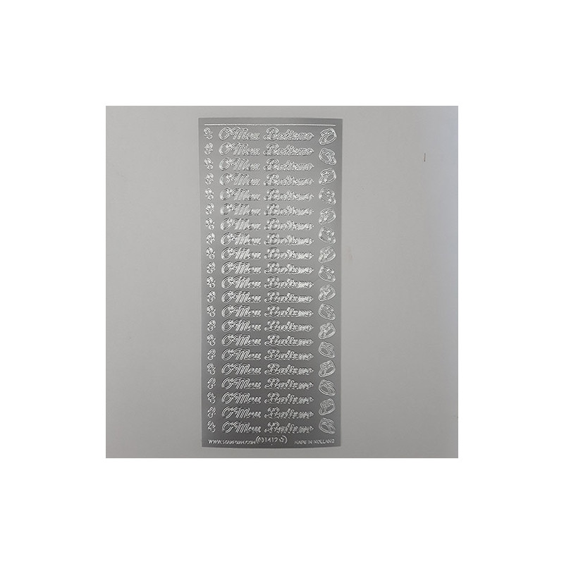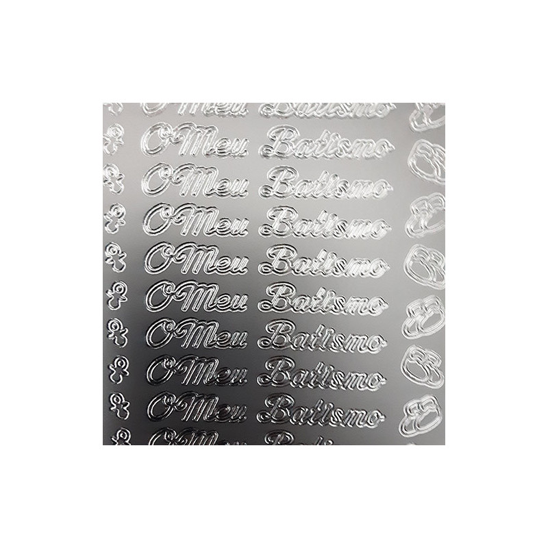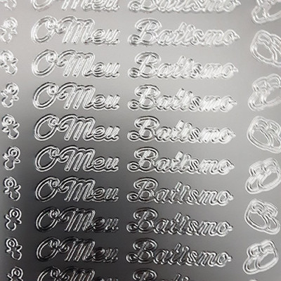 Etiquetas em folha, de colar prata com \ o meu batismo\"."""