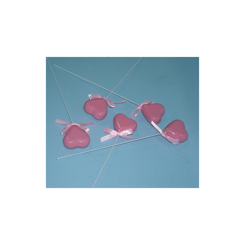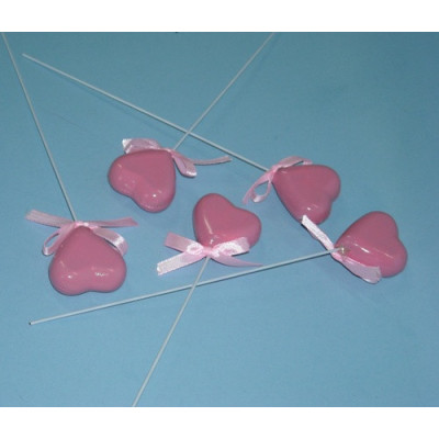 Coração rosa c/ pé em Arame para decorar as suas ofertas ou embalagens.