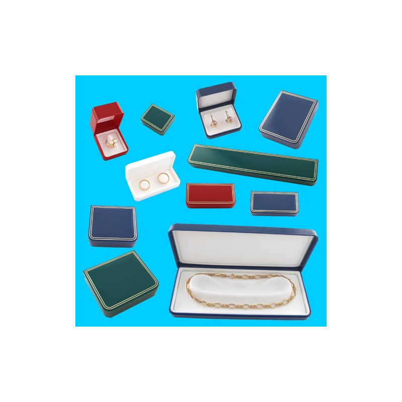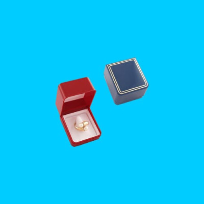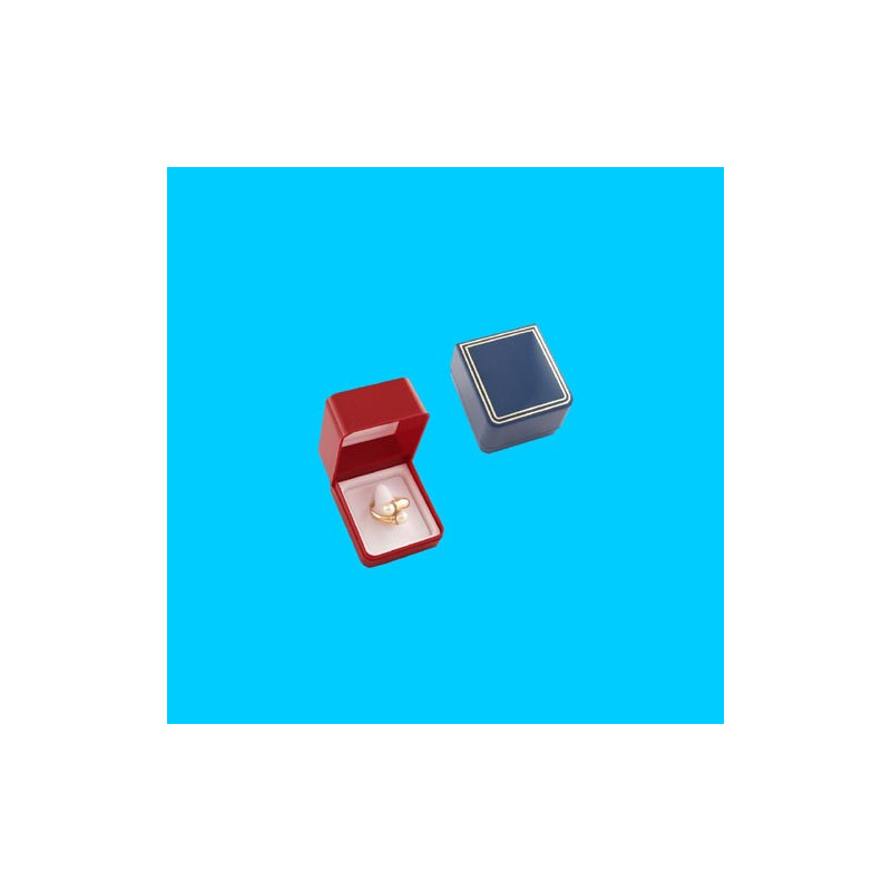 Estojo em plástico azul para anel, com filetes dourados gravados na tampa. Estojos ideais para jóias e bijuteria...