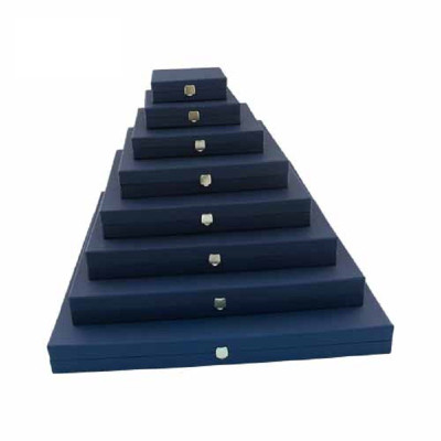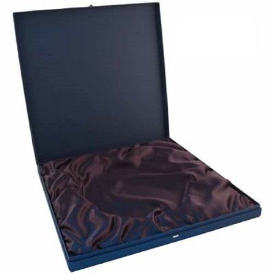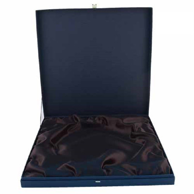 Estojo em Cartão Azul, interior c/ Corte redondo (Diam. 30cm) forrado com cetim azul e com fecho dourado