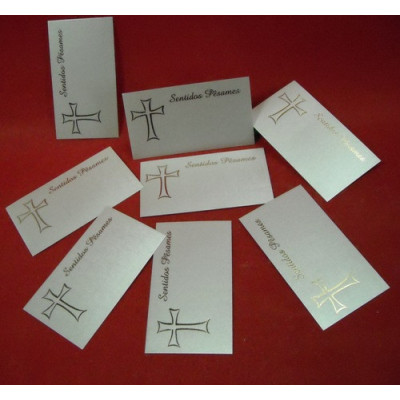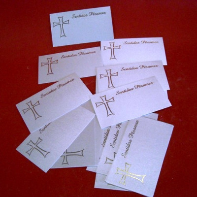 Cartão p/ funeral - Gravação ouro, Cruz - "Sentidos Pêsames"