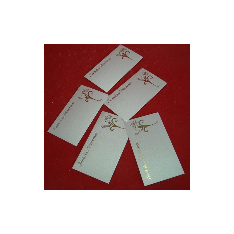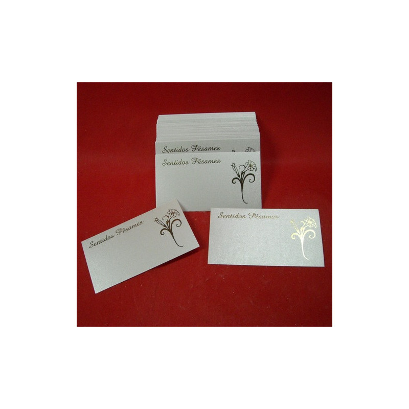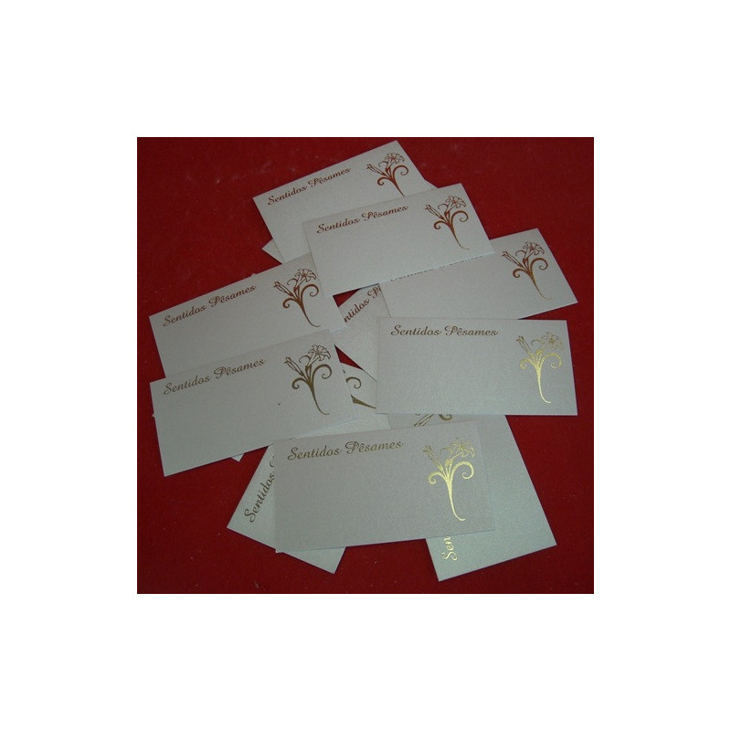 Cartão p/ funeral - Gravação ouro, flor - "Sentidos Pêsames"
