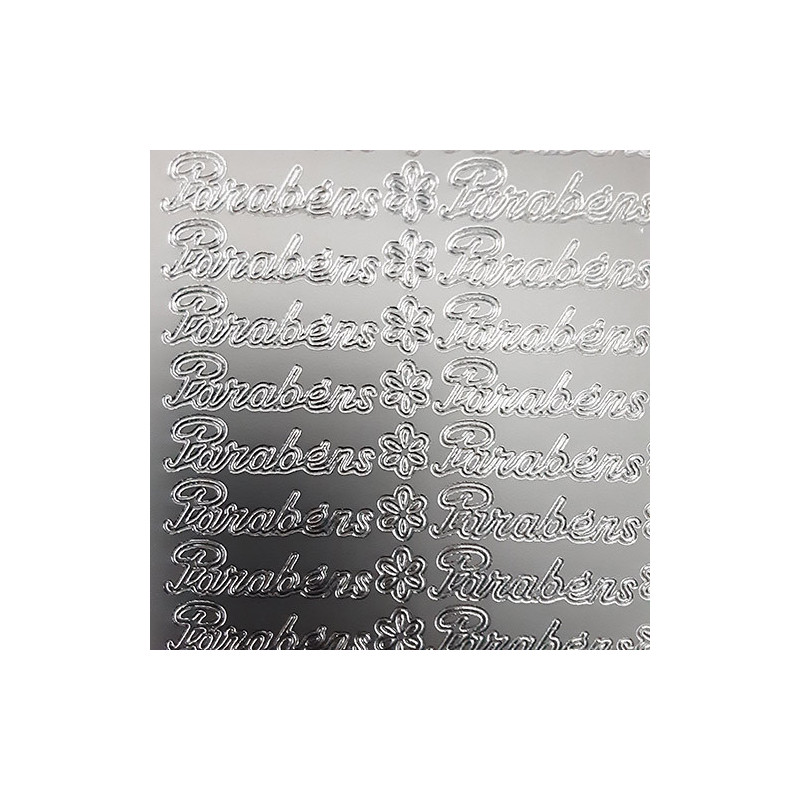 Etiquetas de colar prata "Parabéns" (Cada folha contém 45 etiquetas)