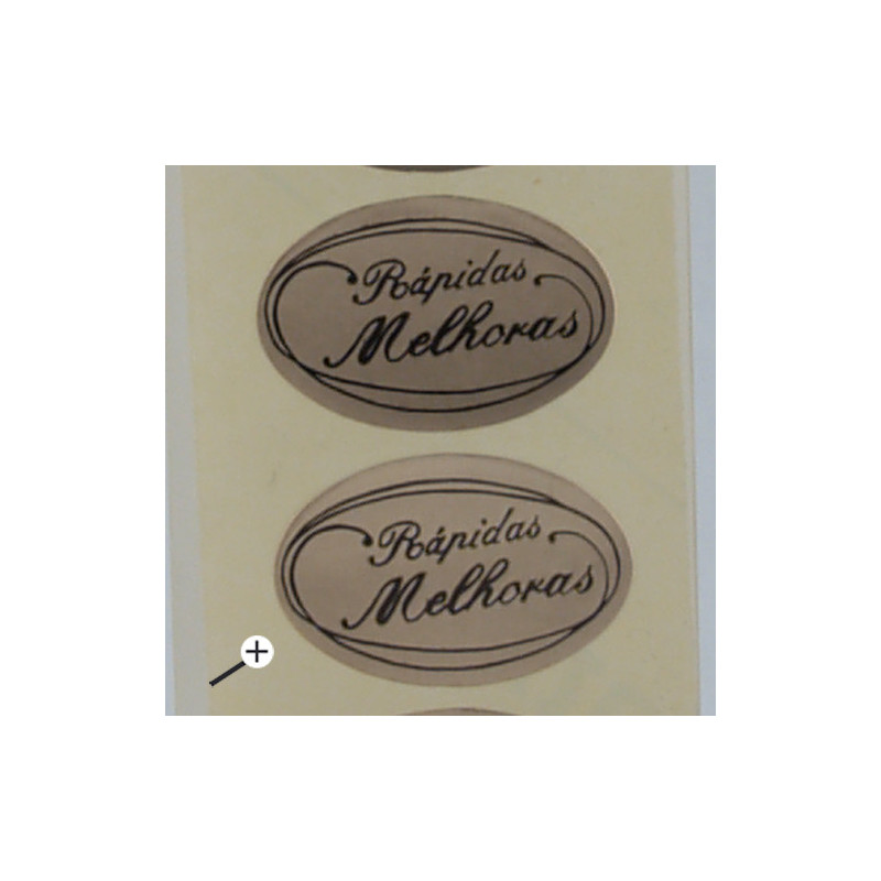 Rolo de 500 Etiquetas de colar douradas - oval - "Rápidas Melhoras"