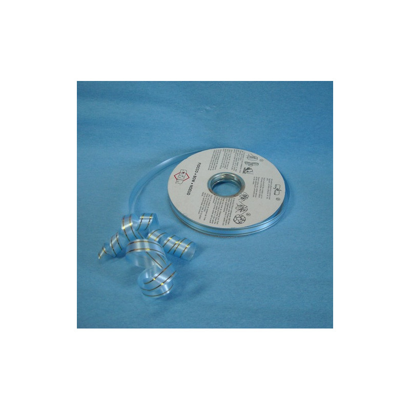 Bobine de Fita azul clara c/ dois fios dourado 13mm x 100Mt
