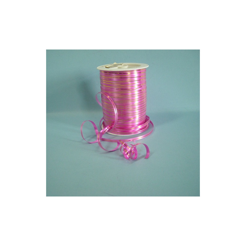 Bobine de Fita rosa c/ fio dourado 5mm x 250Mt