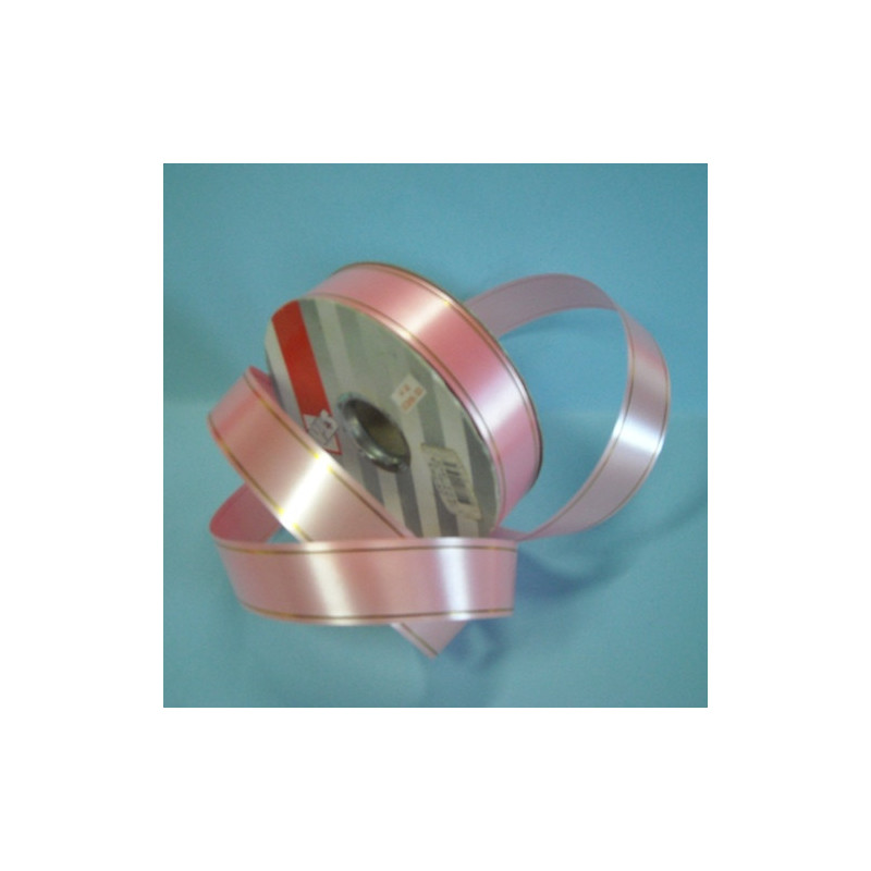 Bobine de Fita rosa c/ dois fios dourado 31mm x 91Mt