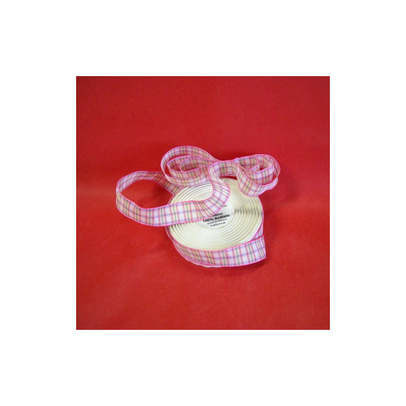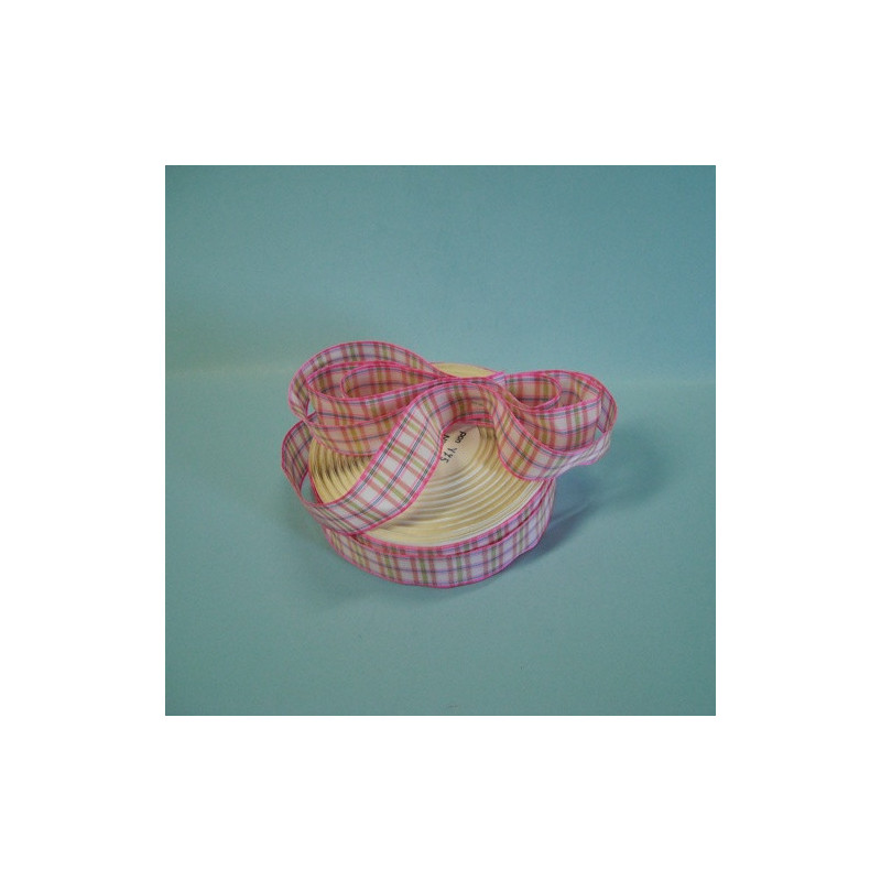 Bobine de fita de tecido aramada c/ riscas/quadrados rosa/verde/azul/branco 25mm x 25Mt.