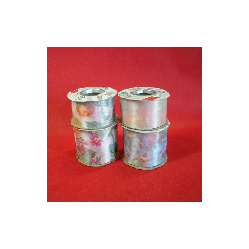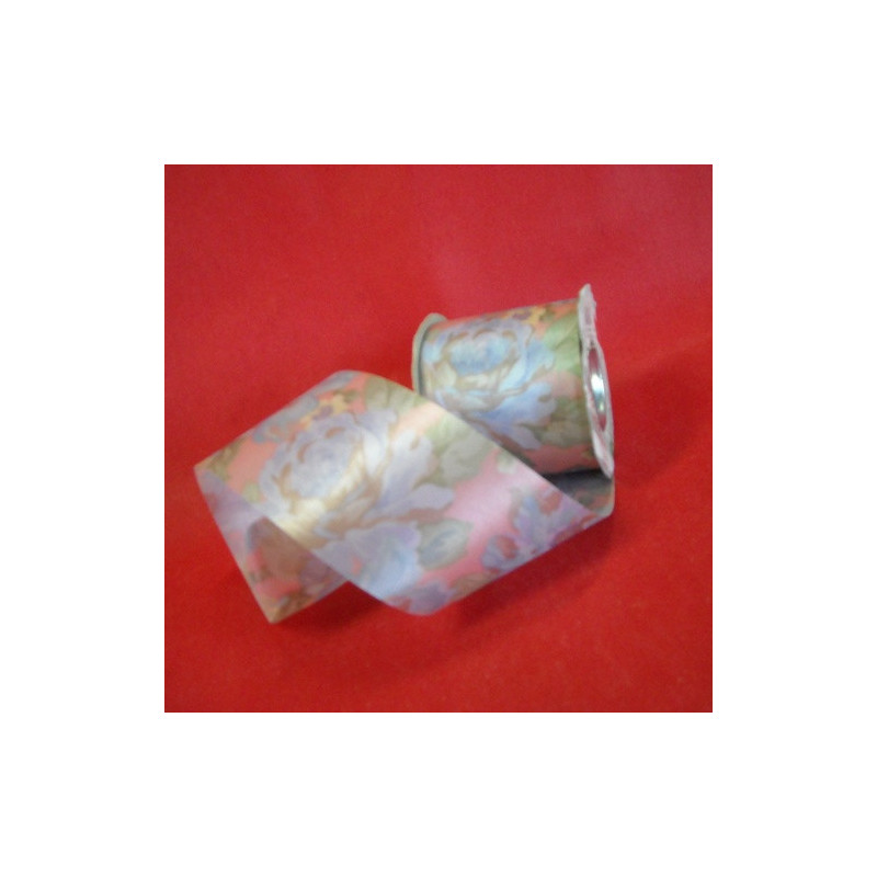 Bobine de fita de tecido c/ flores 69mm x 23Mt.