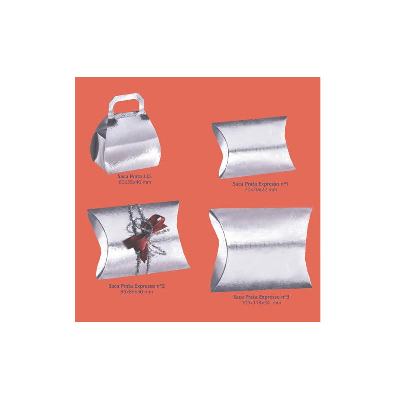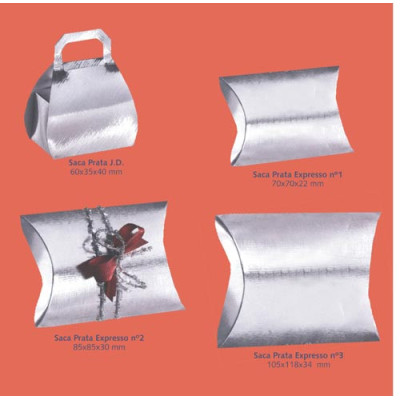 Saca de cartão prateado com abas laterais. Embalagem ideal para pequenas ofertas e para ourivesaria...