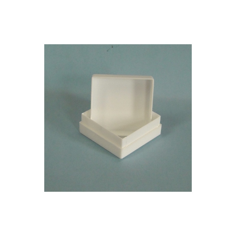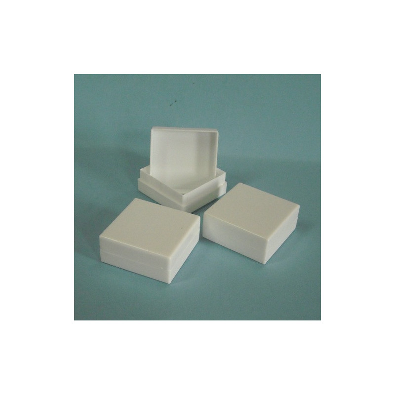 Caixa em plástico quadrada 3x3cm, na cor branca. Embalagem ideal para ourivesarias e pequenas ofertas...