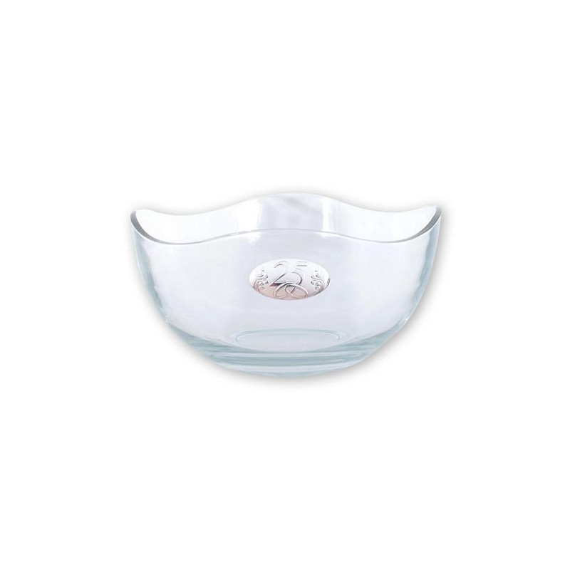Fruteiro em vidro com aplicação de placa bilaminada a prata 25 Anos.