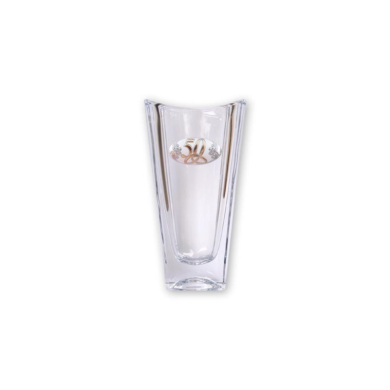 Jarra VJ01 em cristal BOHEMIA com aplicação de placa (50 Anos) bilaminada a prata.