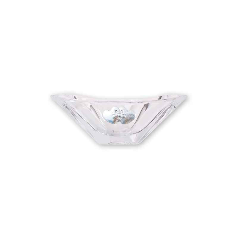 Fruteiro em cristal BOHEMIA com aplicação de placa bilaminada a prata Corações.