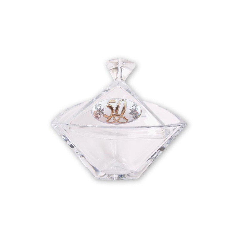 Bomboneira VB 1 em cristal BOHEMIA com placa bilaminada a prata 50 anos.