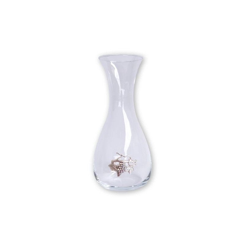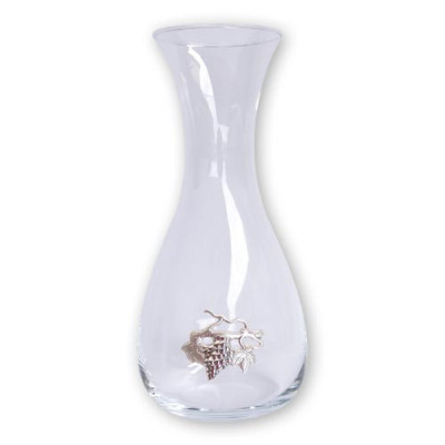 Decanter VD 2 em vidro com aplicação de placa bilaminada a prata em forma de parra de uva.