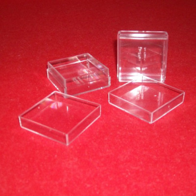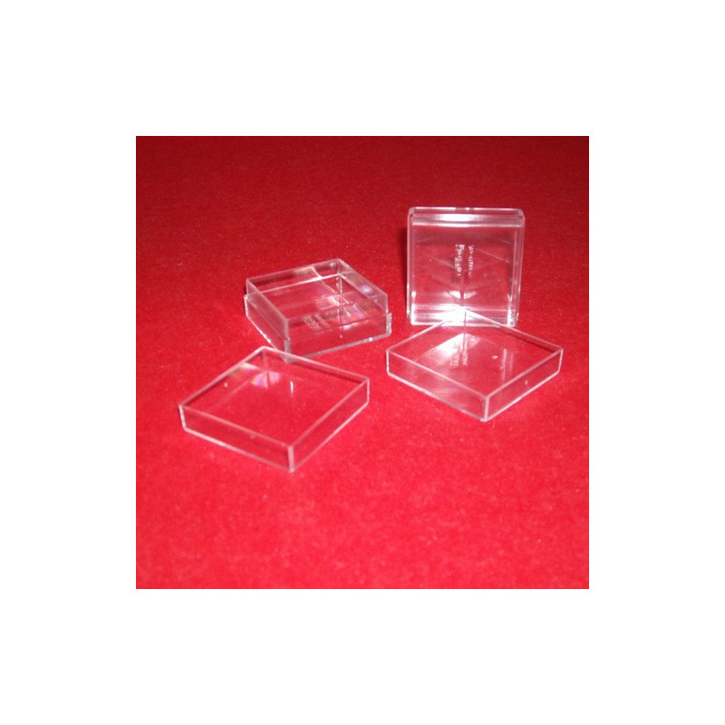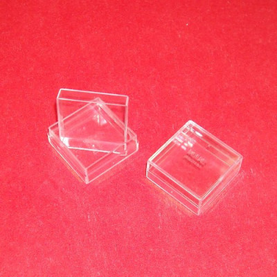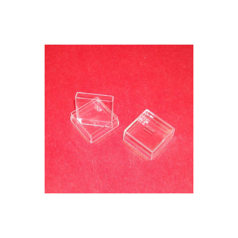 Caixa em plástico quadrada cristal transparente. Caixa ideal para ourivesarias e pequenas peças...