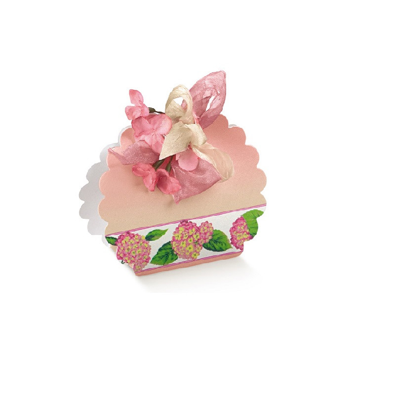 Saca de Cartão em forma de Nuvem, com flores hortenses em tons de rosa