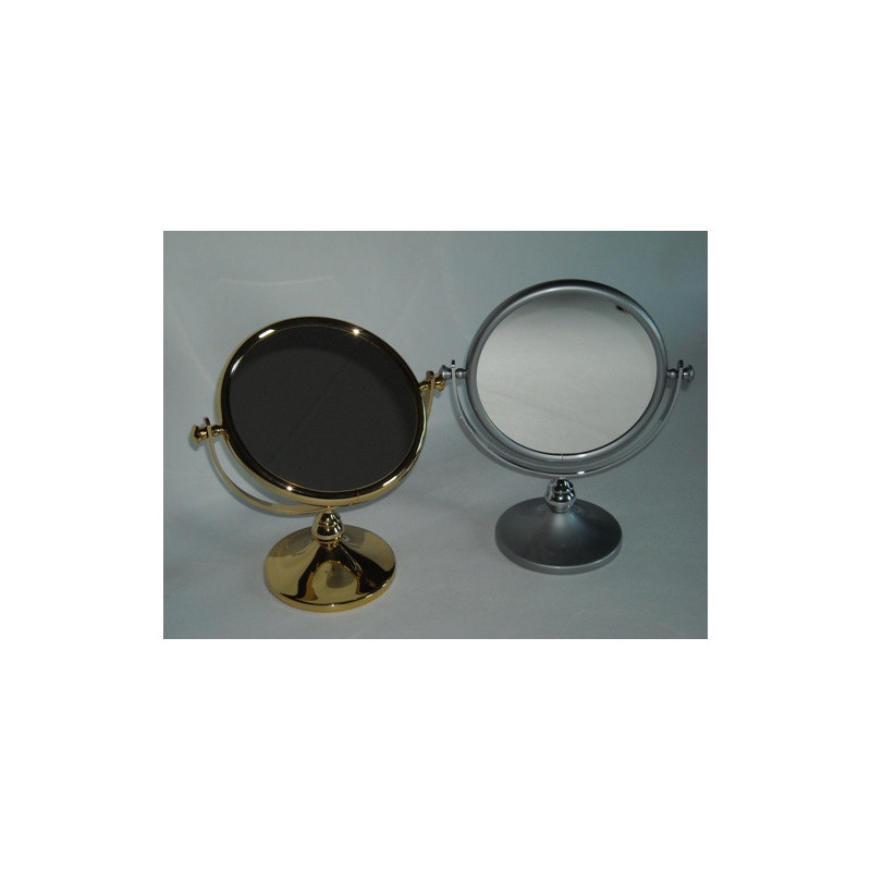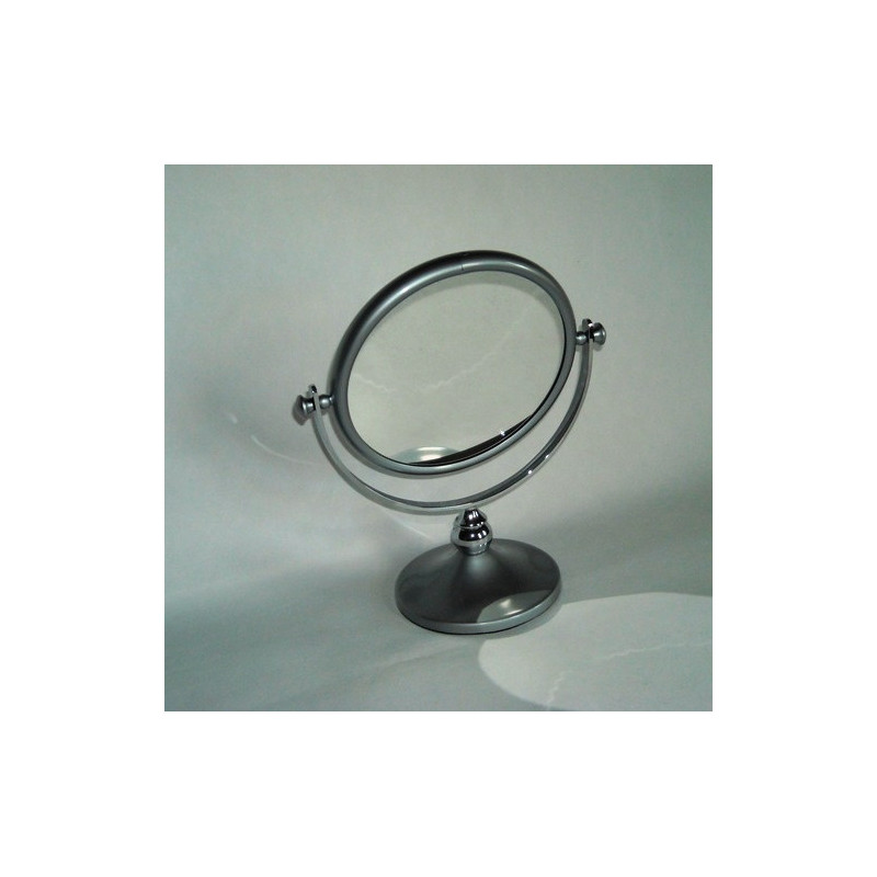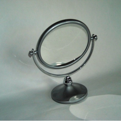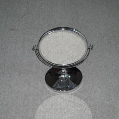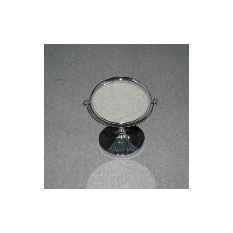 Espelho de Mesa cromado c/ pé, aumenta 2 vezes. Espelho (Diâmetro 20cm).