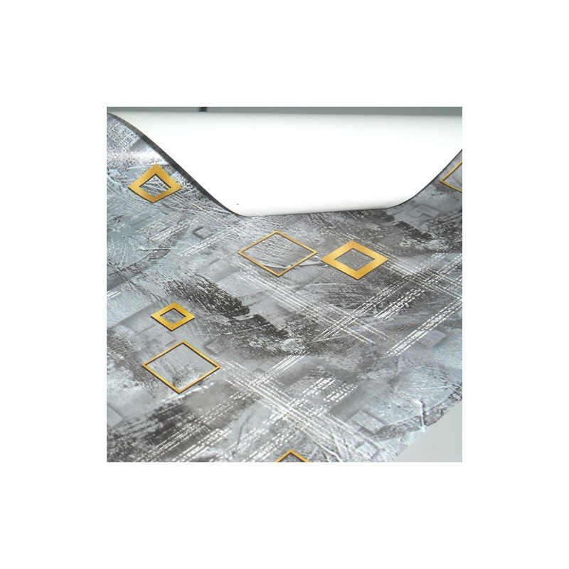 Folha papel fantasia cinza c/ quadrados ouro, para embrulho...