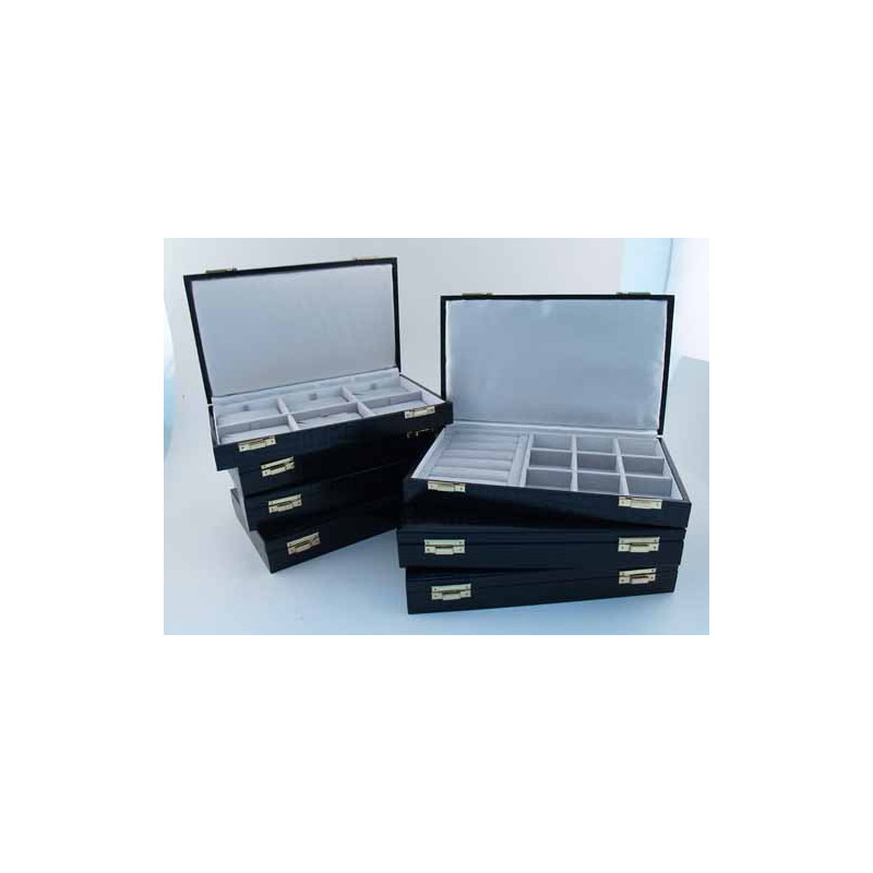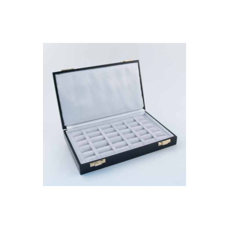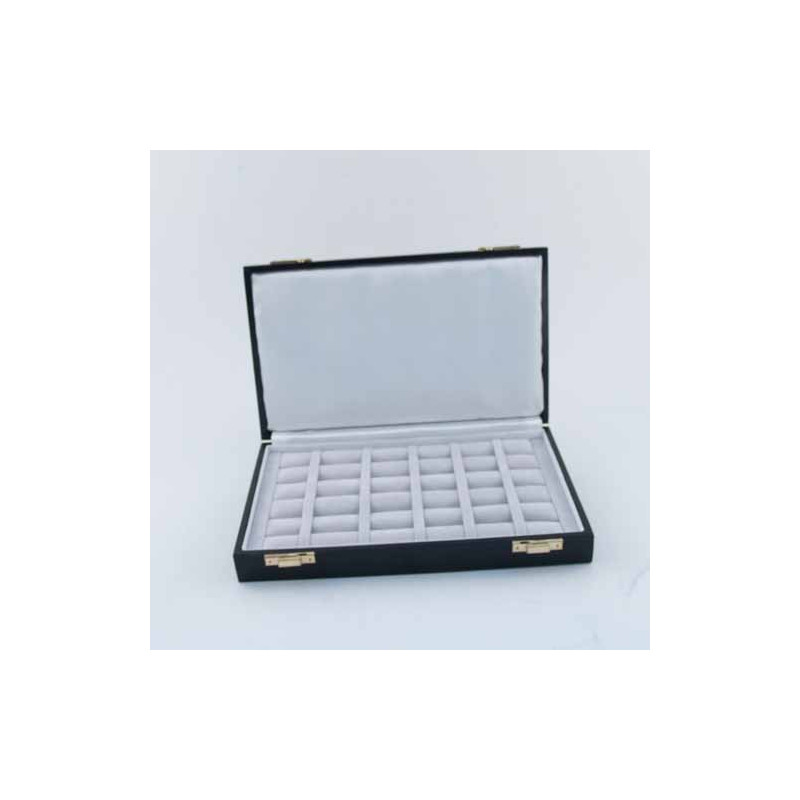 Pasta estojo forrado a pele preta e Interior Veludo cinza, para anel com separador.
