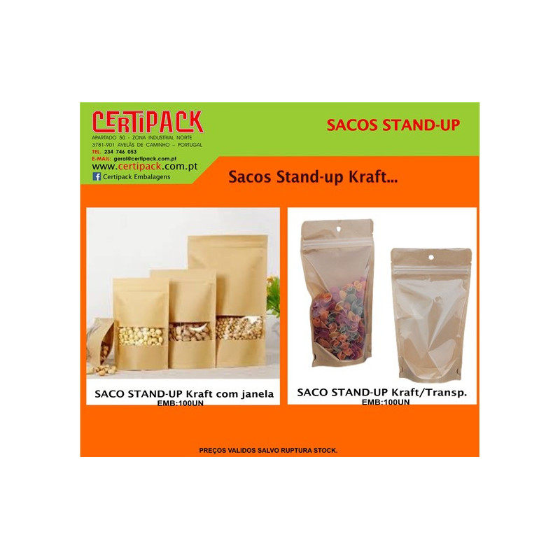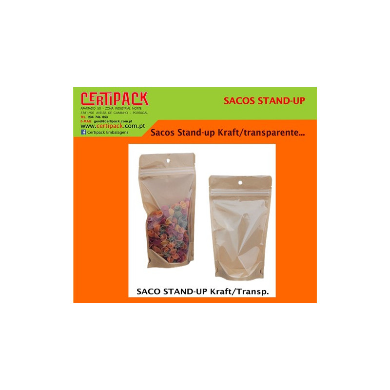 SACO STAND-UP KRAFT/TRANSPARENTE 110X160