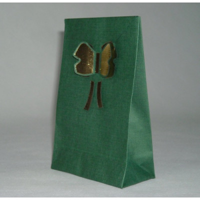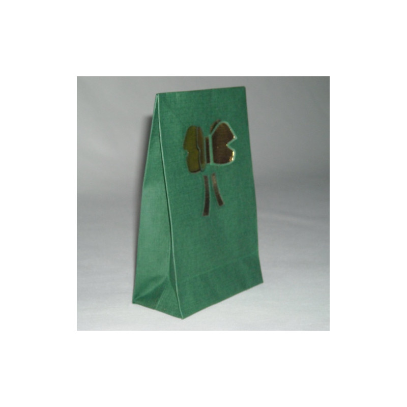 Saca de papel verde nº1, com gravação Borboleta Dourada a fechar o saco.