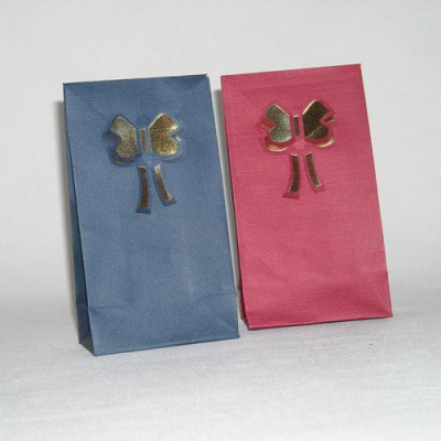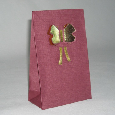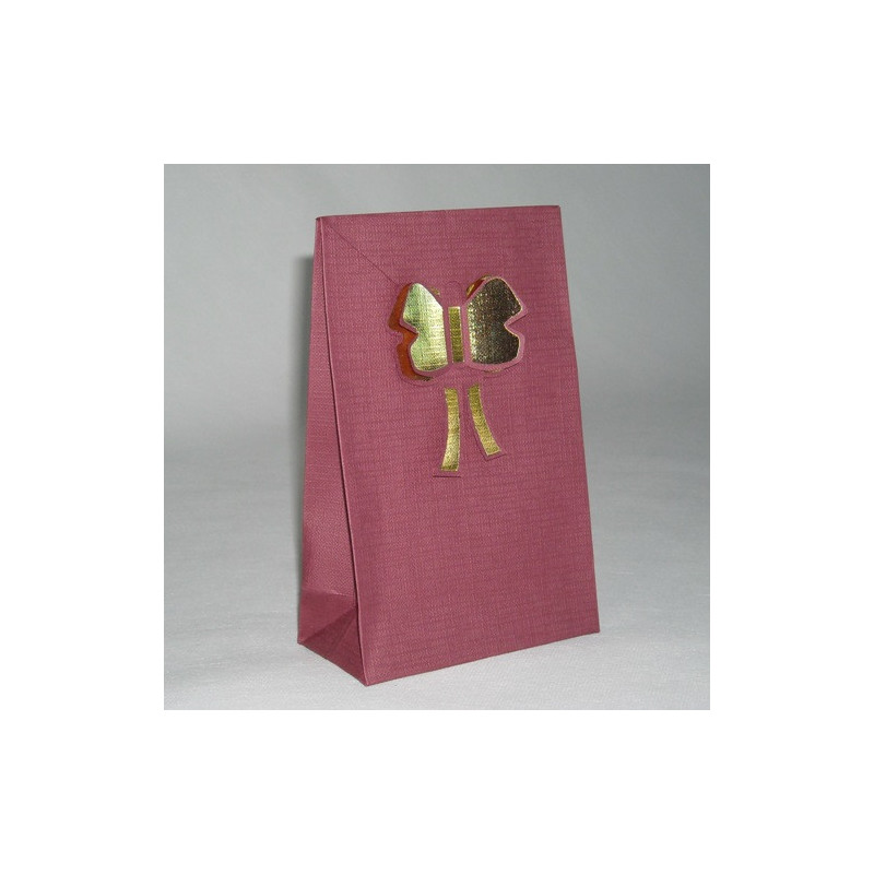 Saca de papel, na cor grená, nº2, com gravação Borboleta Dourada a fechar o saco.