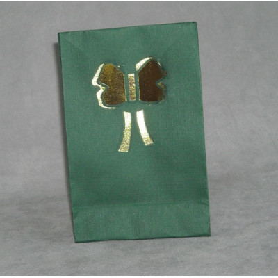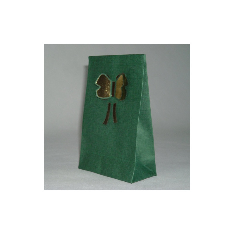 Saca de papel verde nº2, com gravação Borboleta Dourada a fechar o saco.