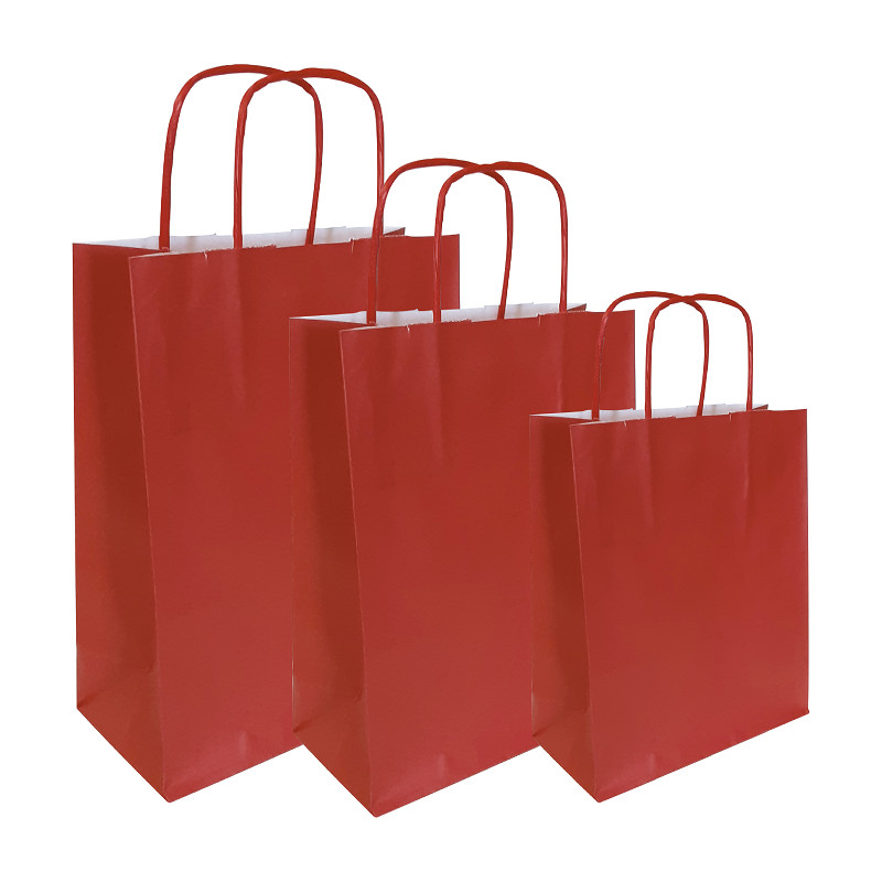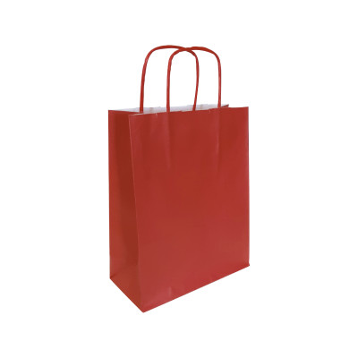 Saco em papel kraft liso na cor vermelho, com asa retorcida em papel.