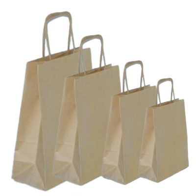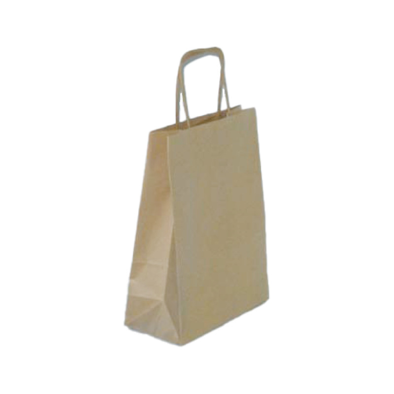 Saco em papel kraft liso castanho vergê ou liso, com asa retorcida em papel.