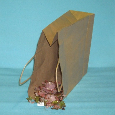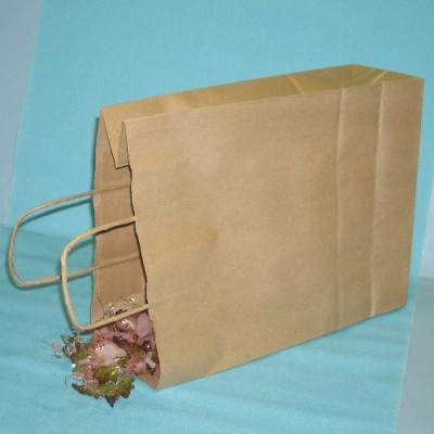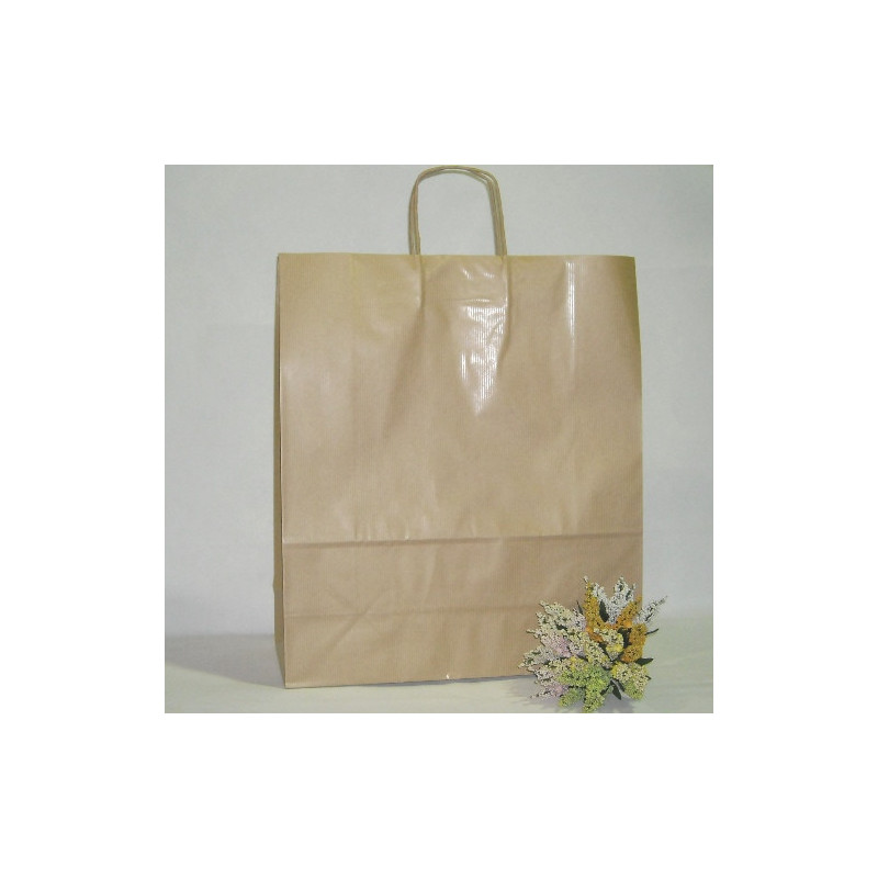 Saco em papel kraft liso vergê, com asa retorcida em papel.