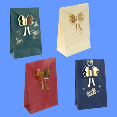 Saca de papel creme, com gravação borboleta dourada a fechar o saco.
