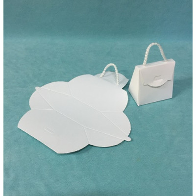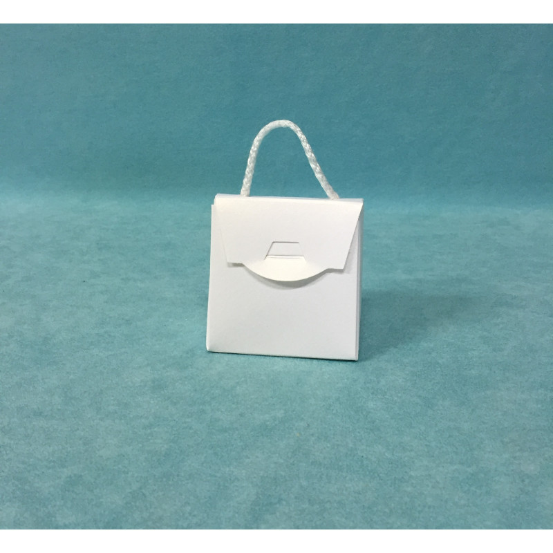 Saca tipo mala com pega em papel brilhante com cordão branco. Embalagem ideal para pequenas ofertas...
