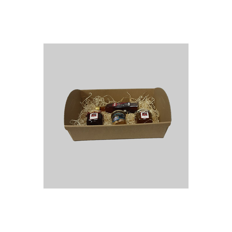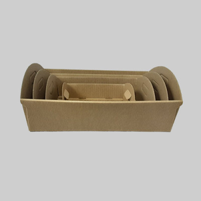 Tabuleiro em cartão kraft ondulado, tipo cesto com asas (Fabrico italiano-super-resistente). Embalagem ideal pequenos cabazes...